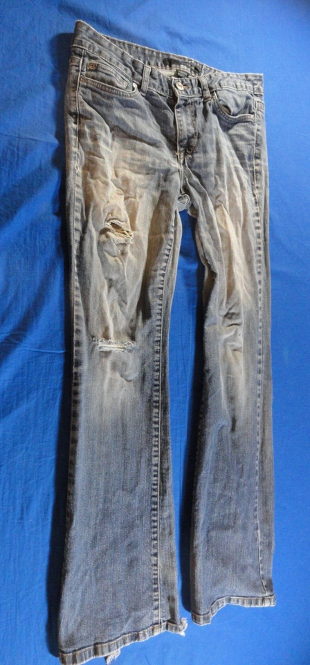 CALVIN KLEIN JEANS ULTIMATE BOOTCUT BLUE DISTRESSED FADED DENIM PANTS 8R / 29