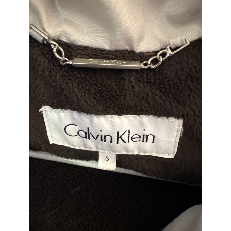 Warm and stylish Calvin Klein puffer jacket in size Small. Features a quilted shell (100% polyester) with a faux fur-trimmed hood for a cozy look. The interior includes a soft upper body lining and smooth lower body lining for comfort. Insulated with a premium 60% duck down / 40% waterfowl feather filling that provides excellent warmth without bulk.