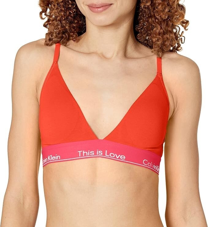 - Calvin Klein Womens This is Love Lightly Lined Triangle Bra Medium Cherry Tomato