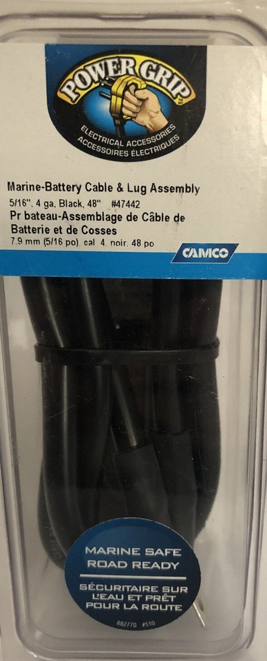- Camco 47442 BLK 5/16" Stud 48" 4 ga Marine Battery Cable & Lug Assembly Tinned