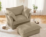 - Camel Corduroy Slipcovered Deep Seat Armchair & Ottoman Set