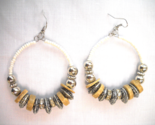 - CAMEL TAN COCONUT WOOD & ANTIQUE ALLOY & SEED BEADED HOOP DANGLING EARRINGS