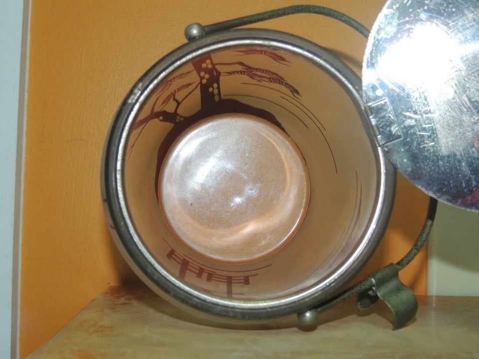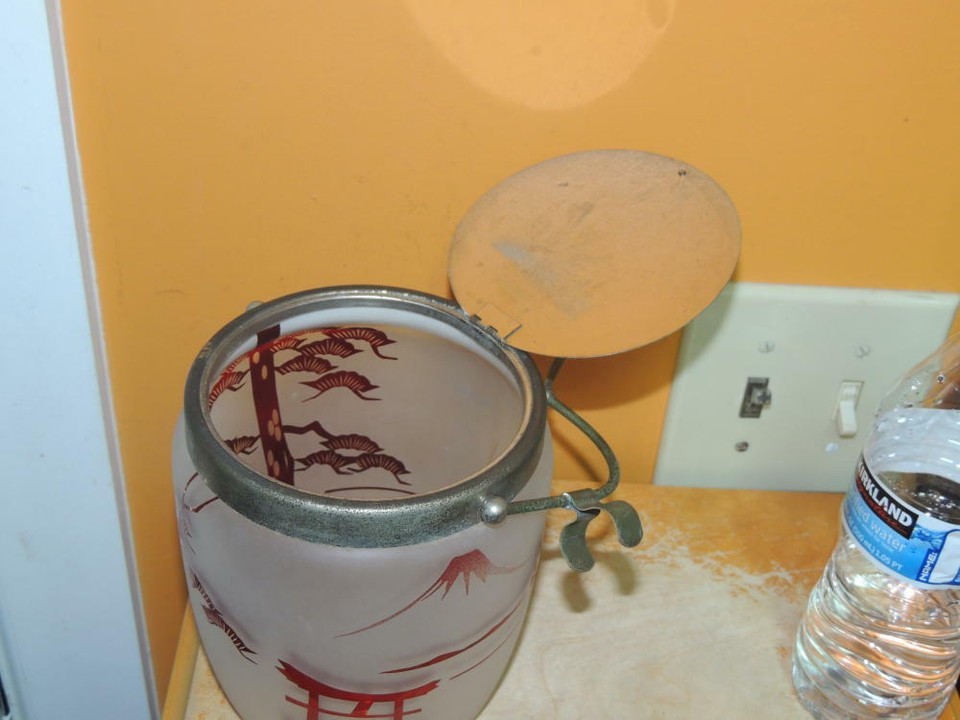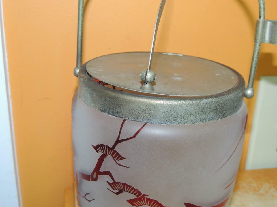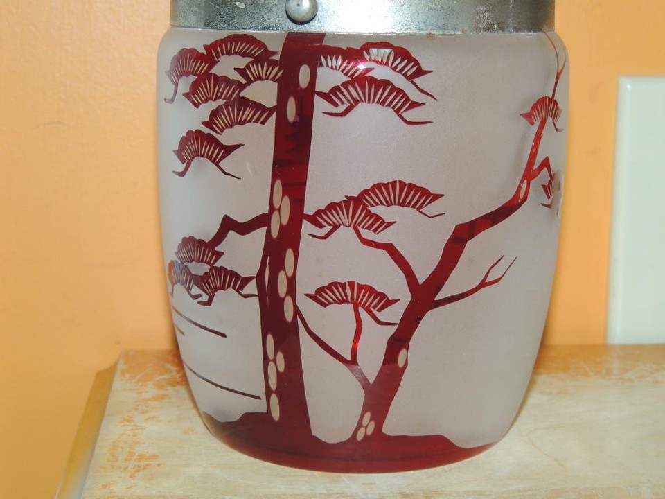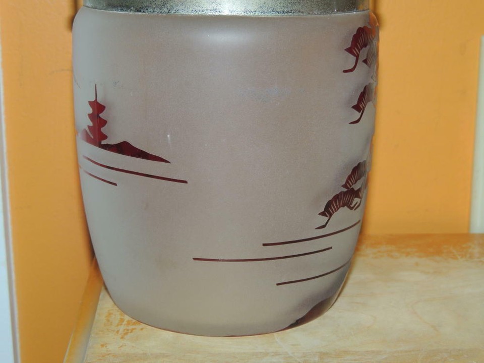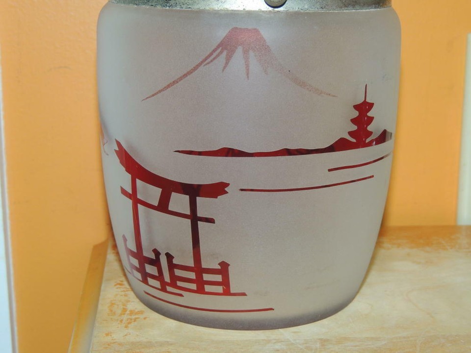- Cameo Glass Ice Bucket 6" Japanese Mt Fuji ruby flash acid washed mid century
