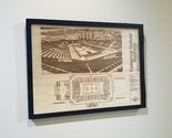 Product description: Bring a piece of basketball history to your wall with this beautifully crafted laser-engraved stadium blueprint art of the Cameron Indoor Stadium in Durham, North Carolina. This detailed wooden artwork features both an aerial view and floor plan of the iconic venue, showcasing its intimate seating arrangement and classic basketball court layout. The piece includes precise architectural details, from the band seating sections to the home and visitor benches. Elegantly framed in black, this stadium schematic artwork displays historical information and specifications of the venue, making it a perfect collector's item for college basketball enthusiasts. The laser-etched wood creates a stunning sepia-toned effect that adds warmth and character to any room. Each piece is carefully crafted to highlight the architectural beauty and historical significance of one of college basketball's most renowned arenas.