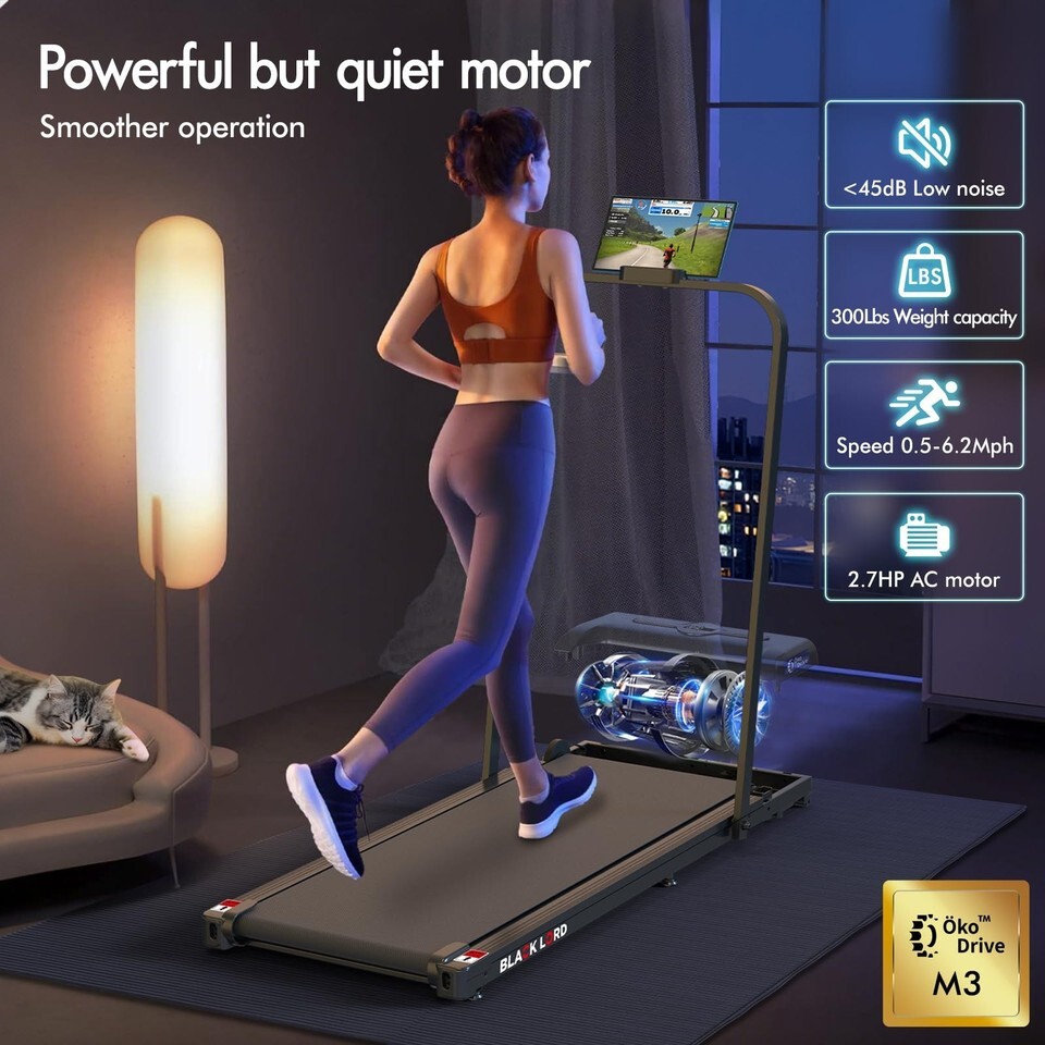 ?POWERFUL QUIET PERFORMANCE? This under desk treadmill features a powerful 2.7 HP motor, accommodating users up to 330 lbs. It operates quietly below 45 dB, making it ideal for both office and home apartment without disturbance for you and others.