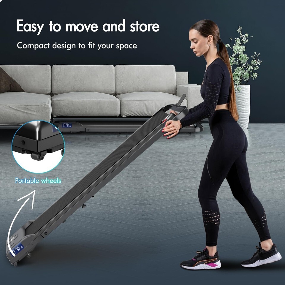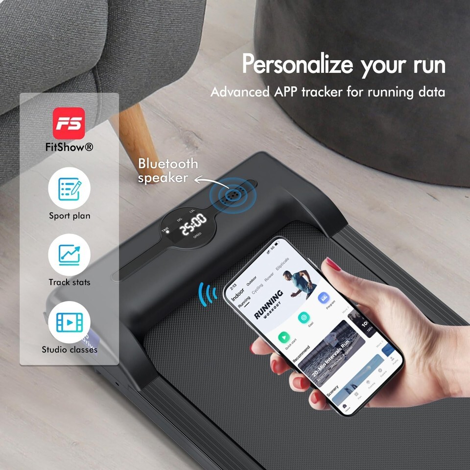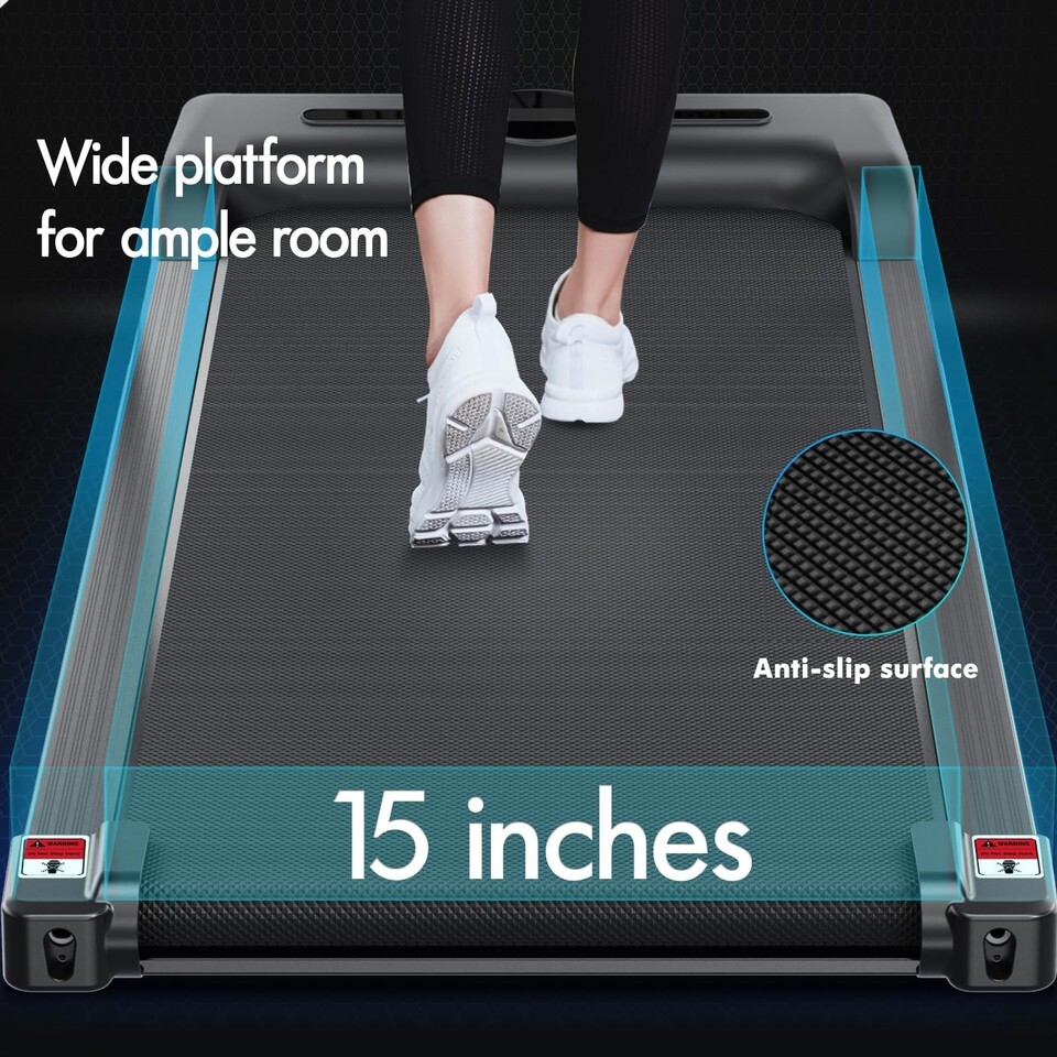?SPACE SAVING INSTALLATION FREE? Our compact folding treadmill (4.9" thick) is easy to store under desk, beds, or sofas and small spaces. Move it effortlessly using the built-in wheels. Your walking pad arrives fully assembled for immediate use.