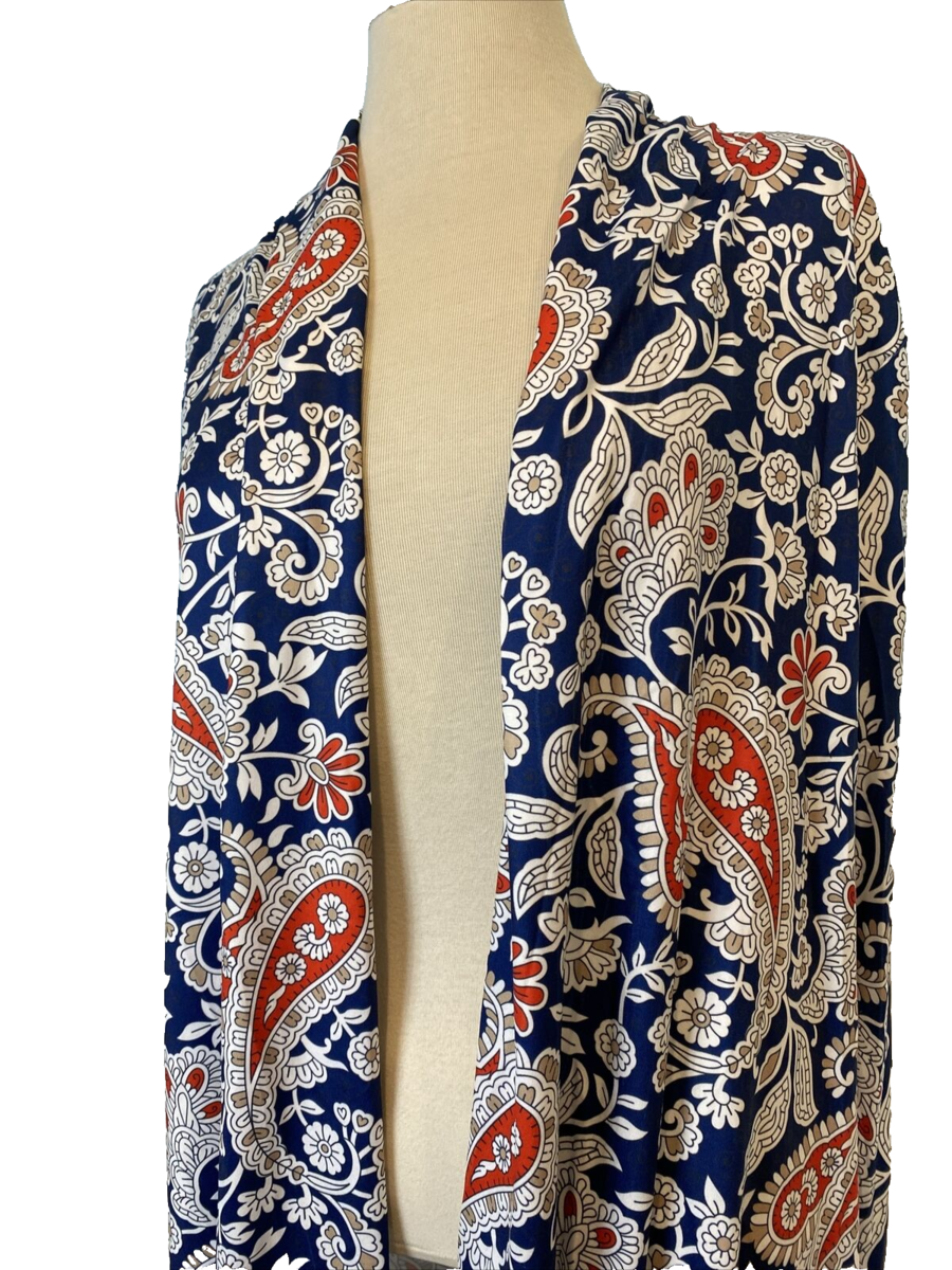 New with tags! Camisa Navy Paisley and Red Print Open Cardigan