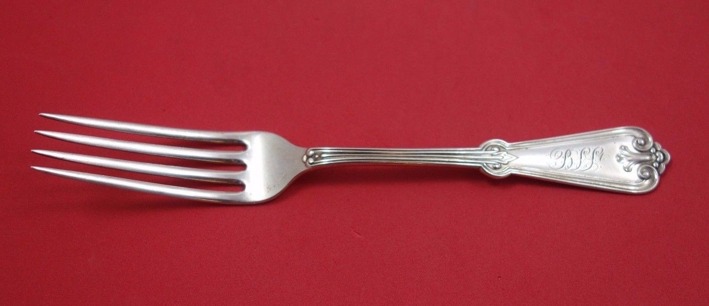 Campanula aka De Anza by Vanderslice sterling silver Dinner Fork, 7 1/2. It is monogrammed (monos vary) and is in excellent condition. Rare Early San Francisco California Silver.