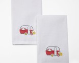 Camper Trailer White Pink Hand Towels 2-Pc Floral Embroidered Retro Gift NEW