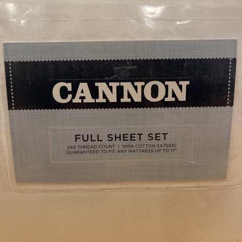 - Cannon Full Sheet Set White 100% Cotten Sateen 240 Thread Count NOS Sears