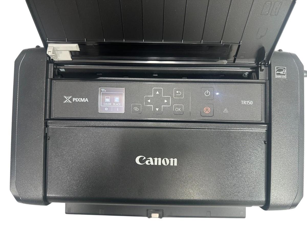 Canon PIXMA TR150 Portable Printer Previously owned and unfortunately we could only check it as far as powering it up due to lack of equipment so we are selling it AS-IS Comes as shown