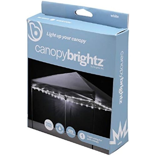 Enjoy your nights under the lights! Get your team spirit in high gear or set the mood for your cookout by lighting your tailgate canopy or patio umbrella. With 40 feet of lights that can be cut to size, there?s plenty to fit a variety of canopy and umbrella sizes. These weather resistant lights come with clips to set them up and run on standard AA batteries (not included). Description Package Includes: Instructions One battery pack with mounting strap One 40 foot light string 48 Clips for attachment Batteries not included Details: Easy Installation Fits canopies and patio umbrellas 10?x10? or less String can be cut to size Requires 3 AA batteries for 24+ hours of light Weather resistant