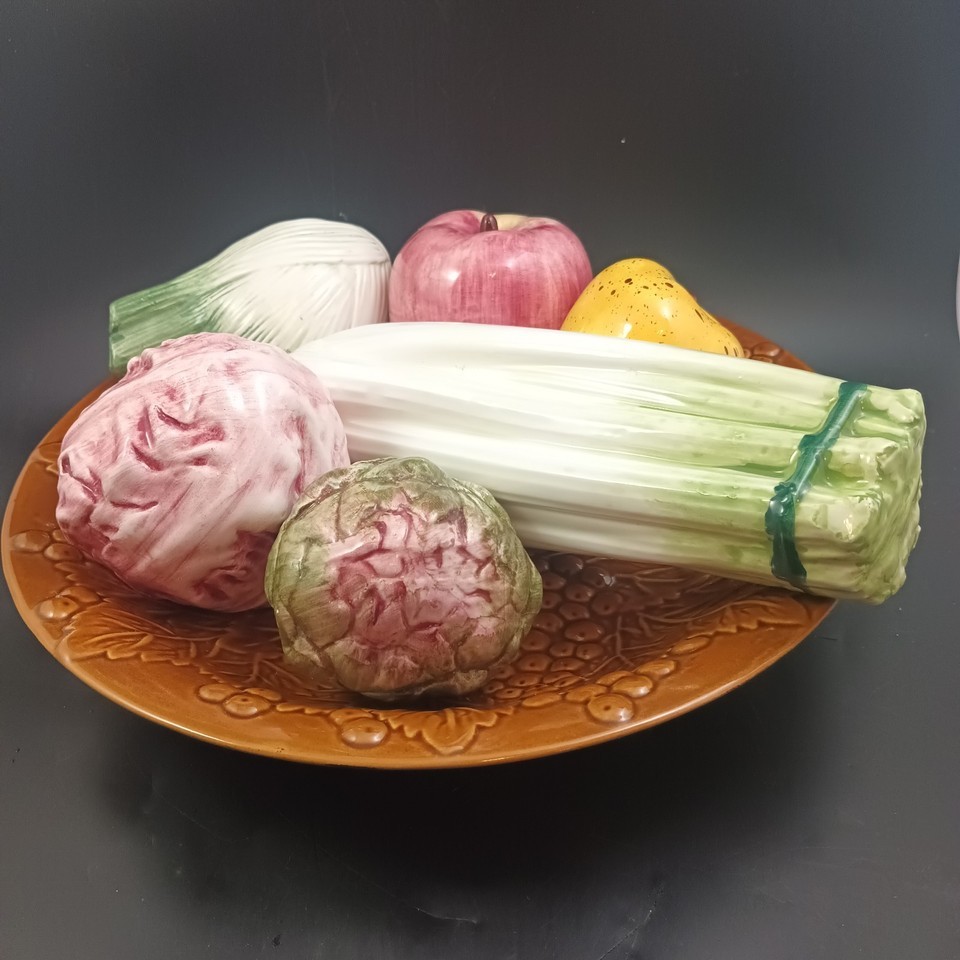 - Capodimonte Bassano Ceramic Fruit + MCM Bowl Centerpiece, Italy, 1 Repair, OBO