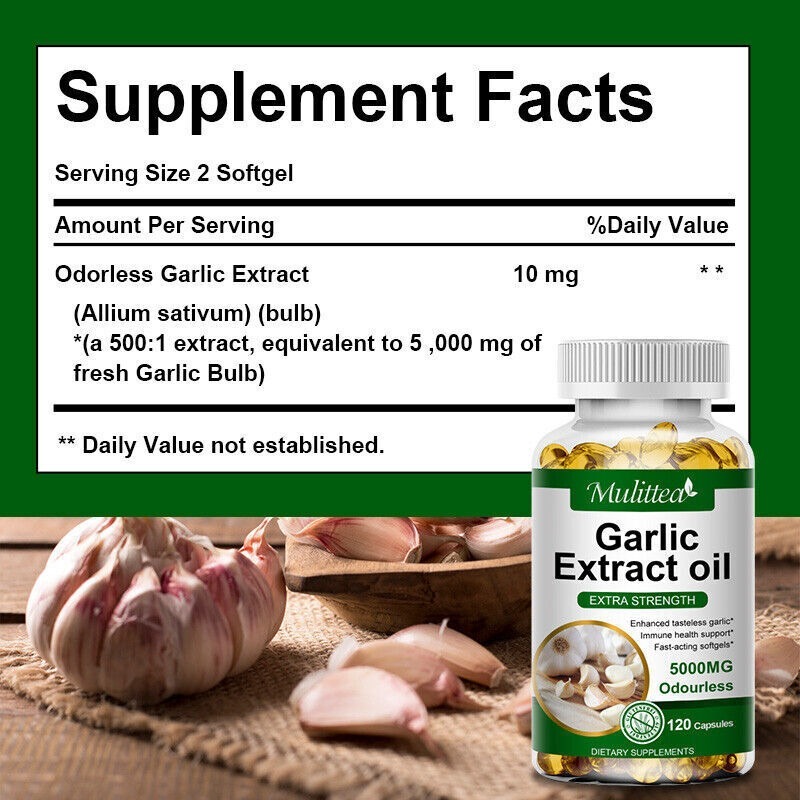 - Capsules 5000mg Garlic Oil 120 Rapid Release Softgels Extract Organic Pills