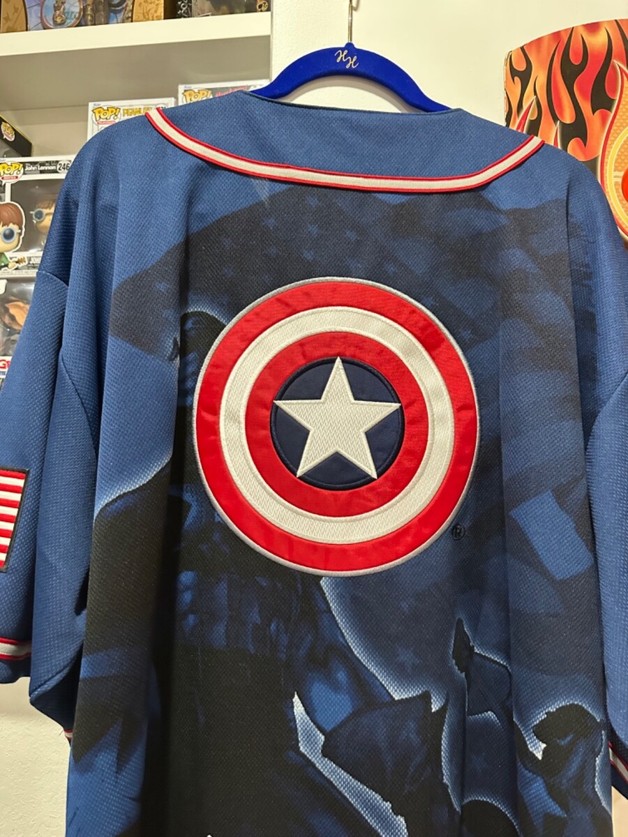 This is a rare fabulous Captain America Baseball Jersey in Size XXL.