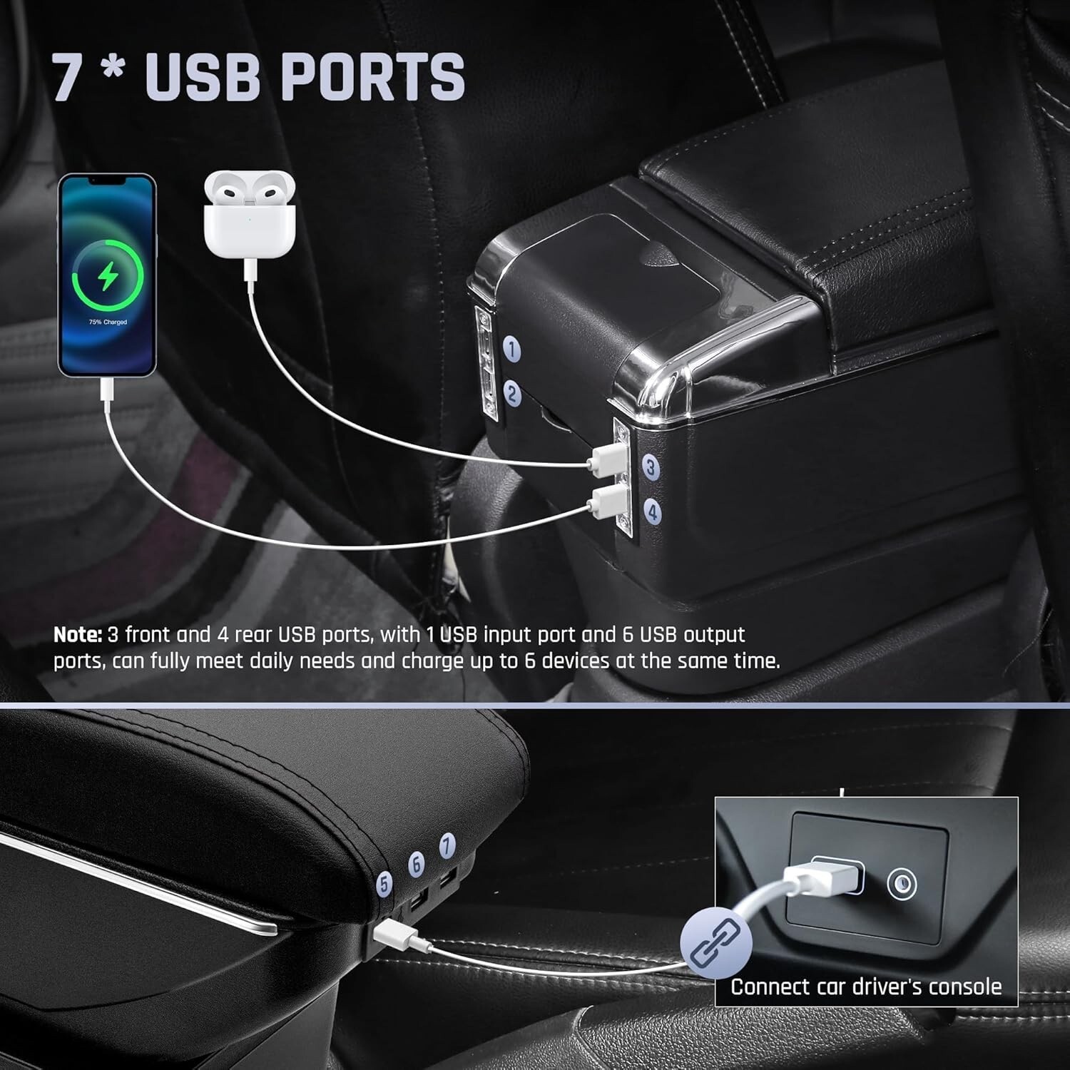 - Car Armrest Box for KIA Rio 2018-2023 Automotive Accessories 7 USB Ports Double-