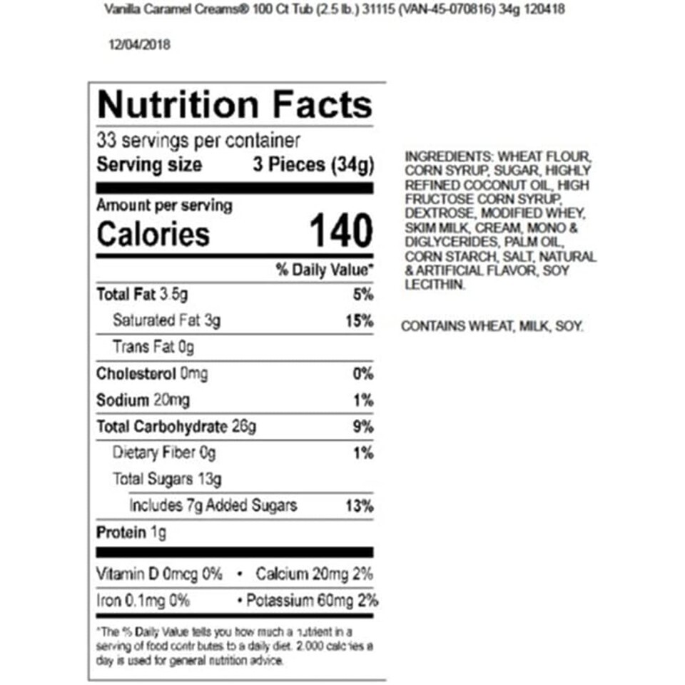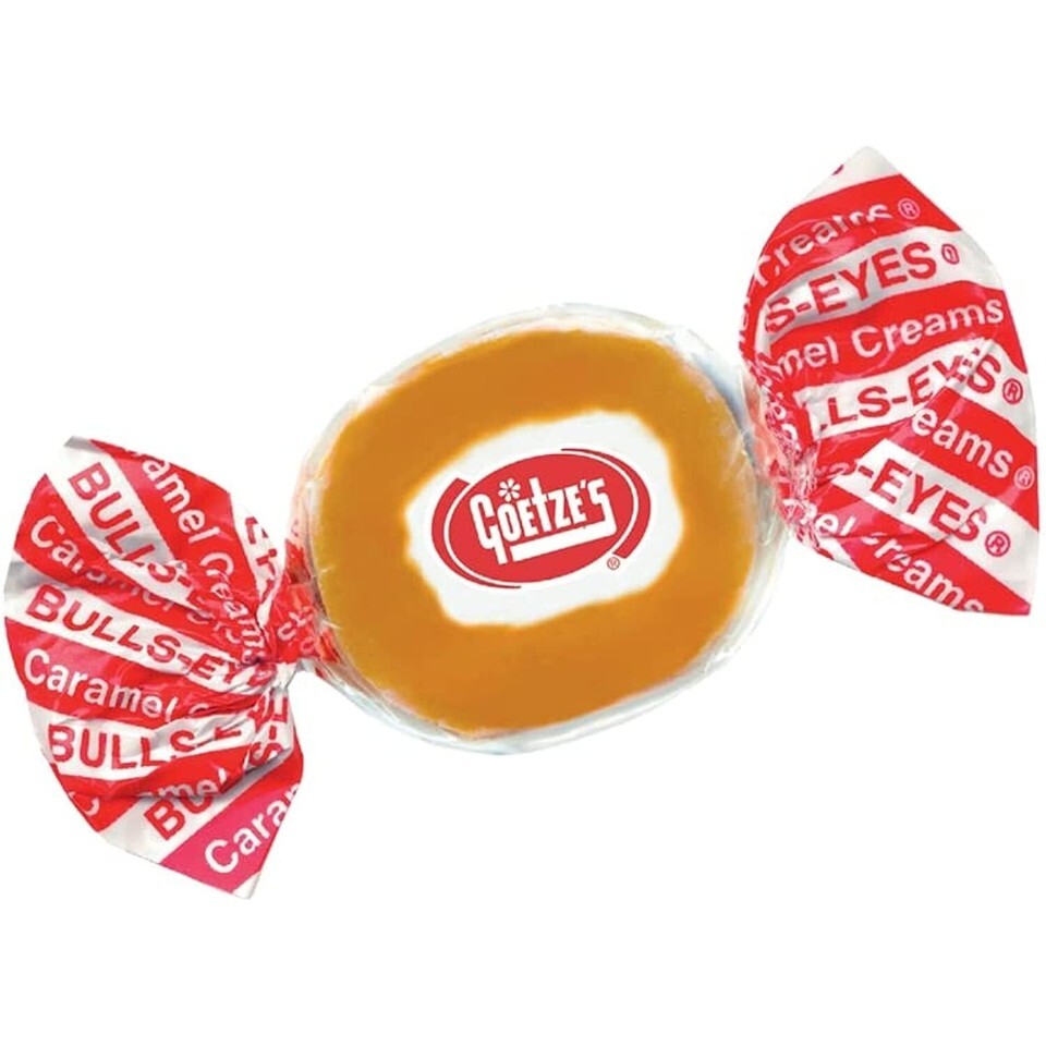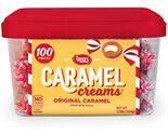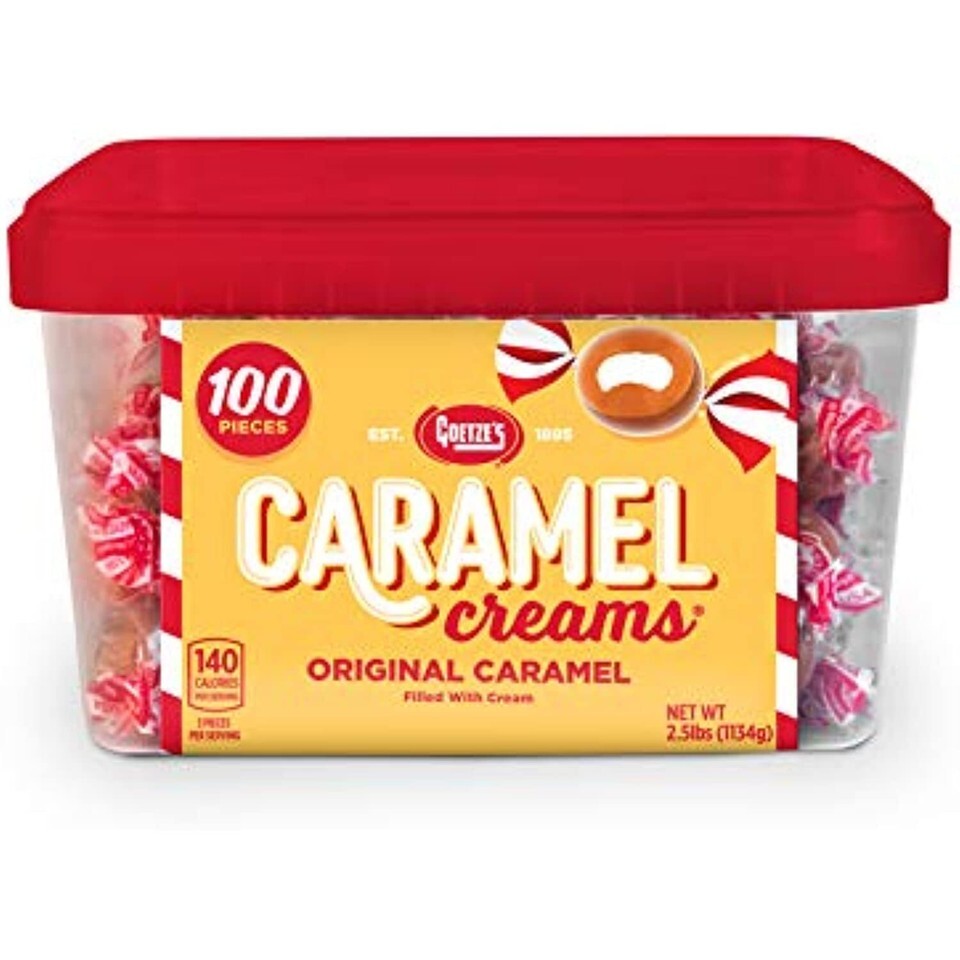 "GOETZE'S" CARAMEL CREAMS; 100 count; Changemaker in a clear plastic counter tub; Delicious sweets made with wholesome ingredients with a chewy caramel wrapped around a rich cream center