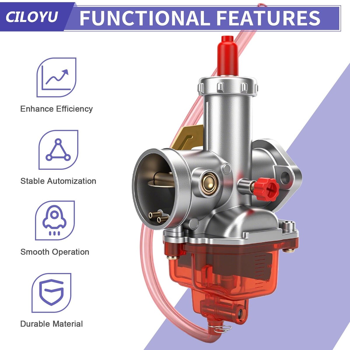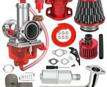 Package Includes: 1 * PZ30 carburetor, 1 * exhaust header pipe, 1 * muffler, 1 * 42mm air filter, 1 * intake manifold, 1 * 12mm air filter, 1 * fuel filter, 3 * gaskets, 1 * fuel line, 6 * clamps, 3 * wrenches, 6 * screws, 4 * ties, 1 * heat shield tape