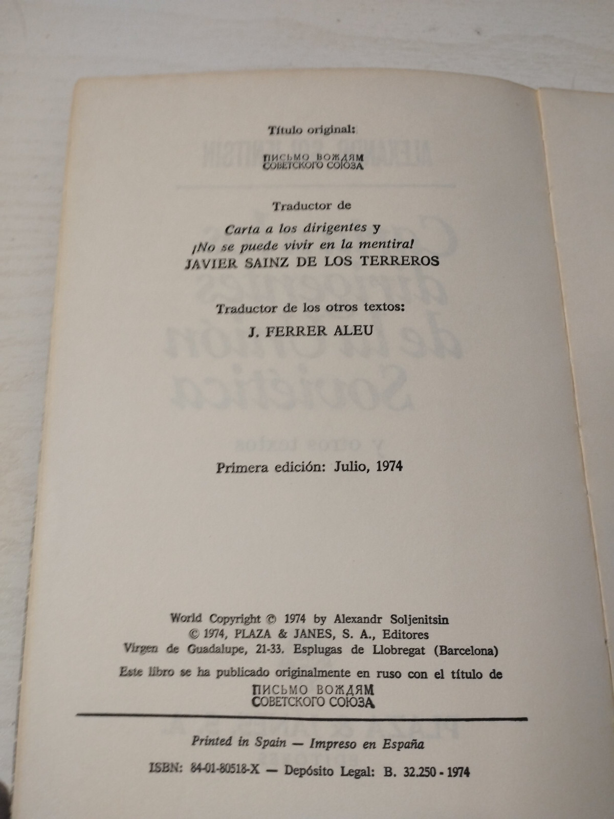 Letter to los Leaders de the Soviet Union Solzhenitsyn 1974 - BOOK Spanish Am