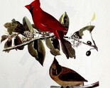 Cardinal Bird Lithograph 1950 Audubon Antique Art Print Finches DWP6A