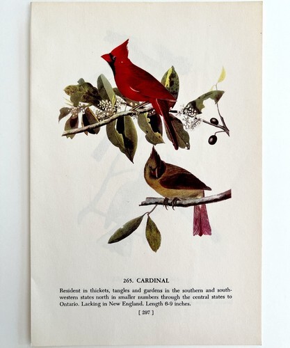 - Cardinal Bird Lithograph 1950 Audubon Antique Art Print Finches DWP6A