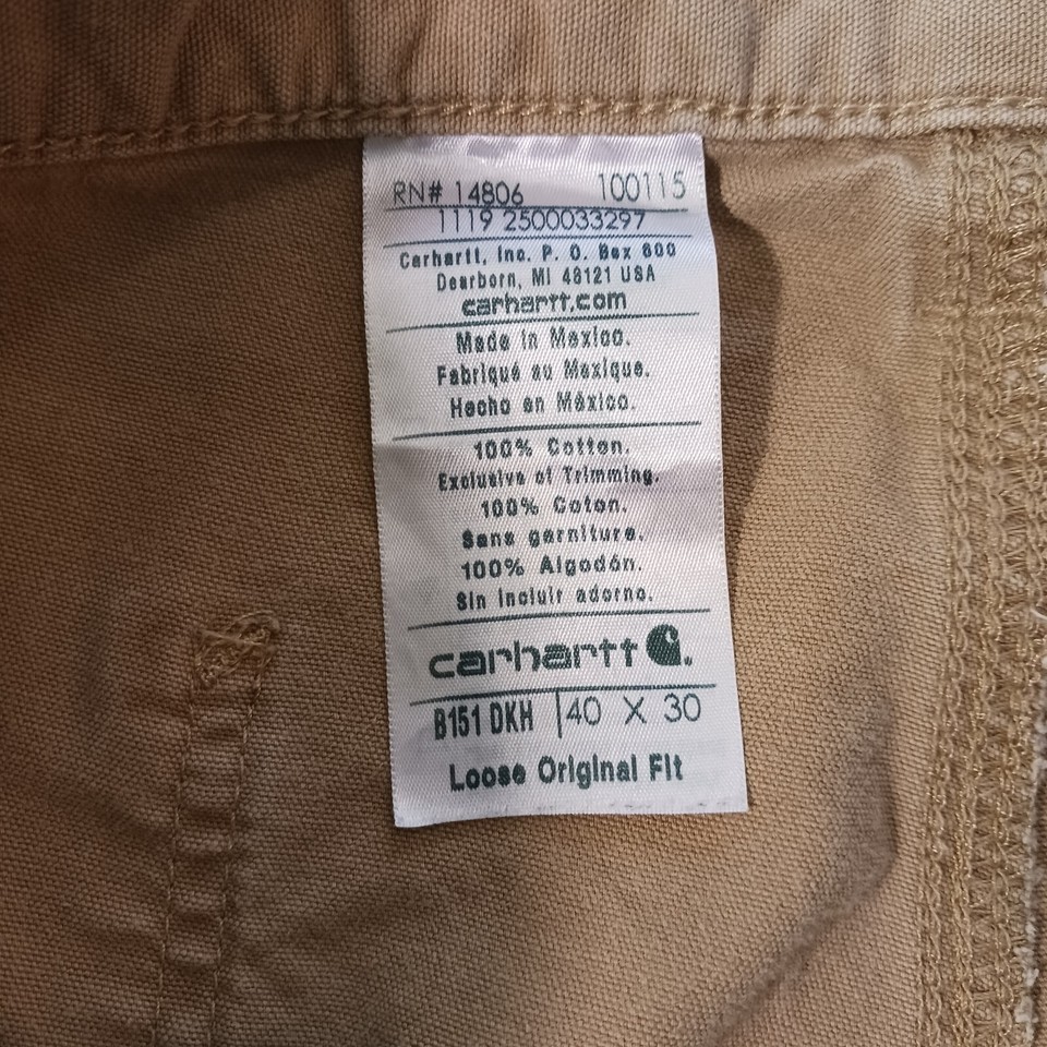 - Carhartt B151-DKH Men's Brown Jeans Cargo Carpenter Loose Original Fit Sz 40×30