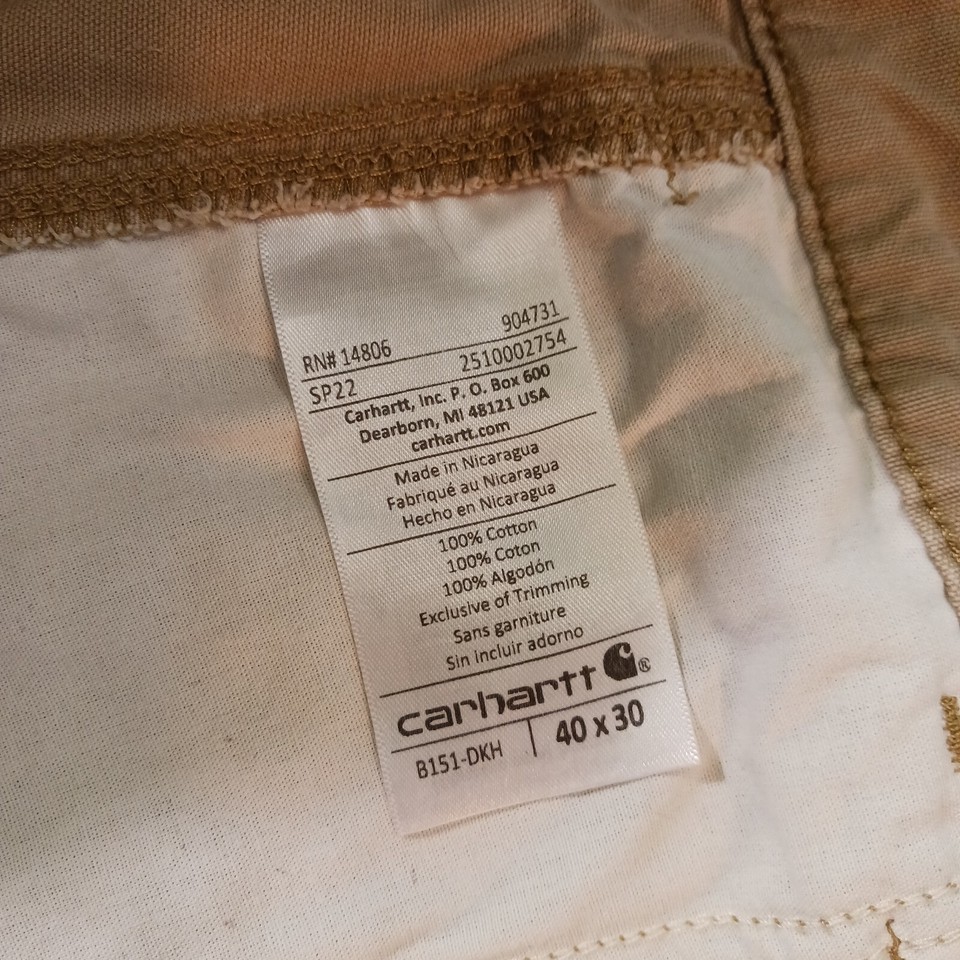 - Carhartt B151-DKH Men's Cotton Brown Pants Cargo Carpenter Jeans Size 40×30