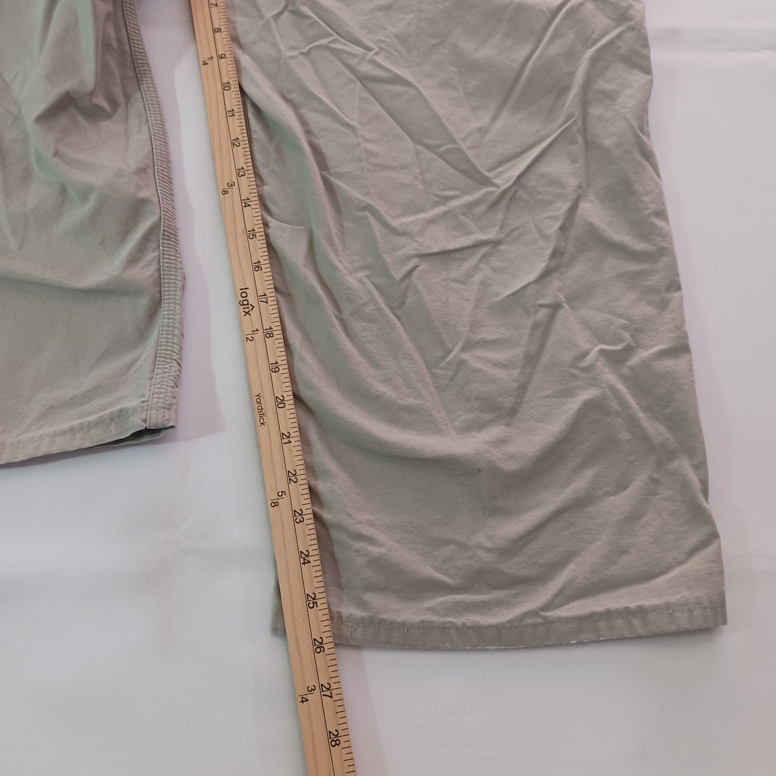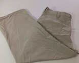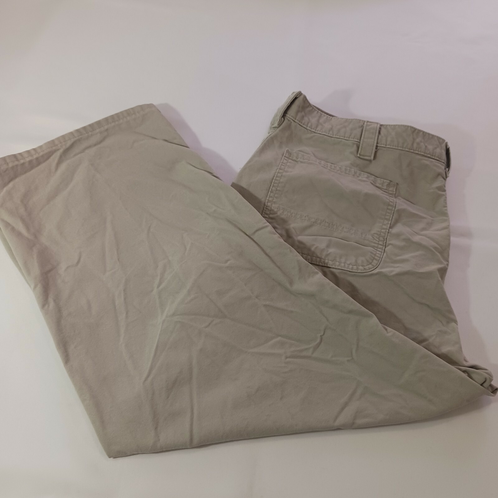 Crafted from 100% cotton canvas fabric, these pants are perfect for travel, casual wear, and workwear. The straight-leg style and classic tan color make them a versatile addition to any wardrobe. These pants are a size 42 inches with a 33-inch inseam, but they fit more like a size 41 inches with a 26-inch inseam.
