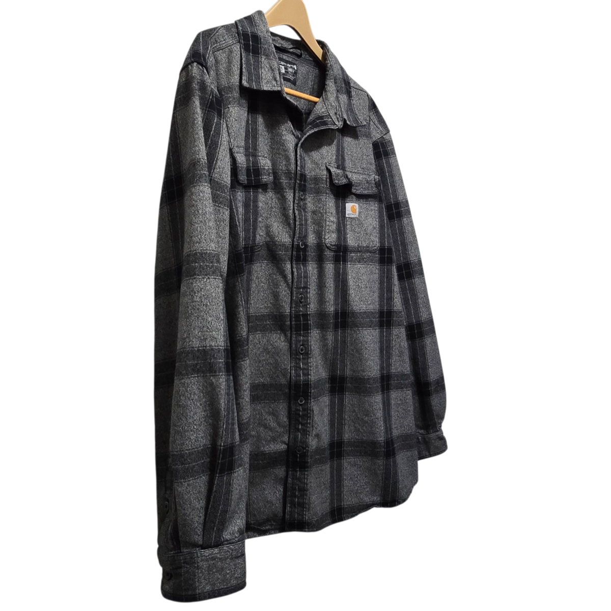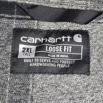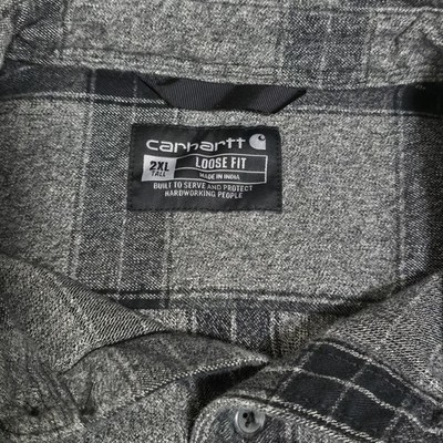 - Carhartt Flannel Shirt Loose Fit Heavyweight Gray Plaid Men's 2XT Tall