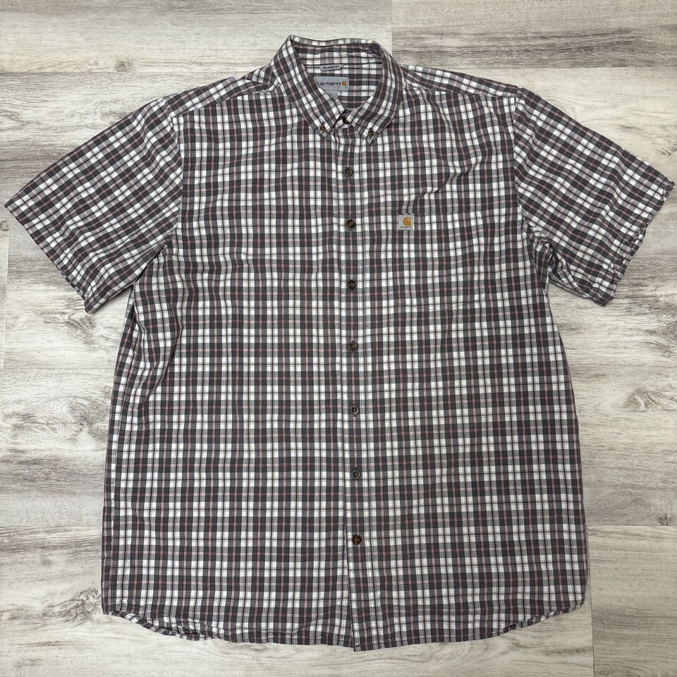 #Carhartt #ShortSleeveShirt #MensXLTall #BrownRedPlaid #EssentialWorkwear