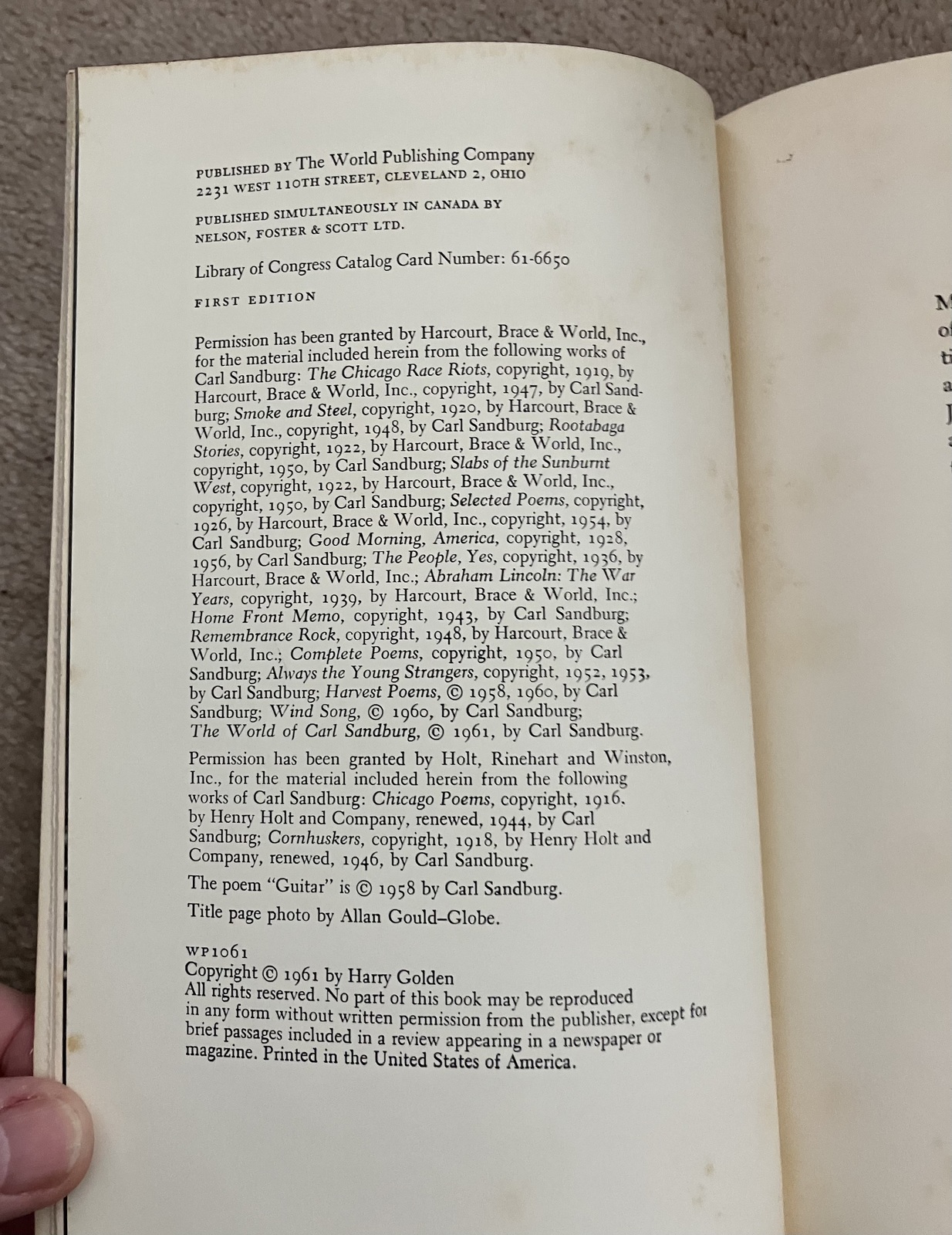 - Carl Sandburg by Harry Golden - 1961 Hardcover First Edition