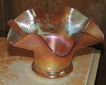 - Carnival Glass Bowl 6"+ Blackberry Spray Ruffled Hat Marigold Amber Iridescent