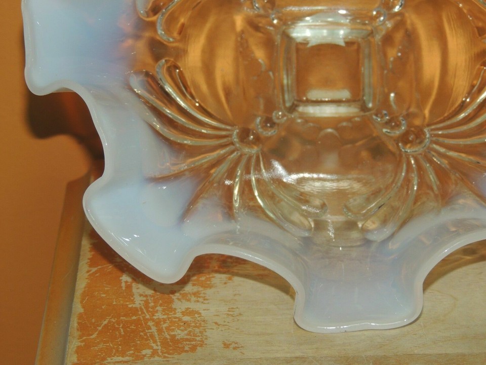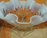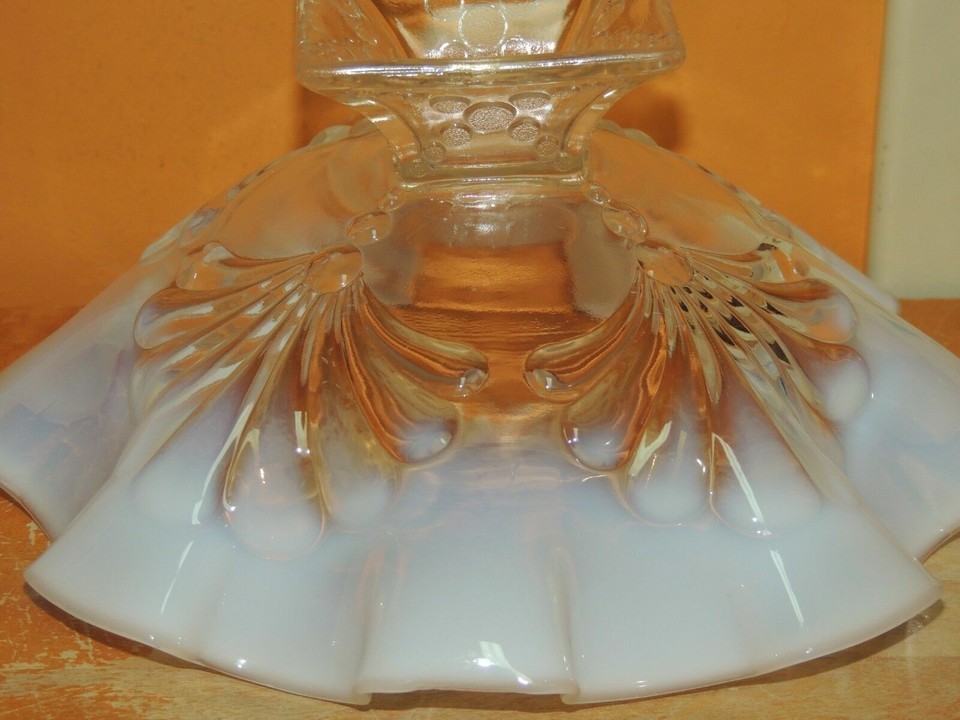 - Carnival Glass Compote 8" Pearl and Shell pattern Clear Opalescent Ruffled Edge