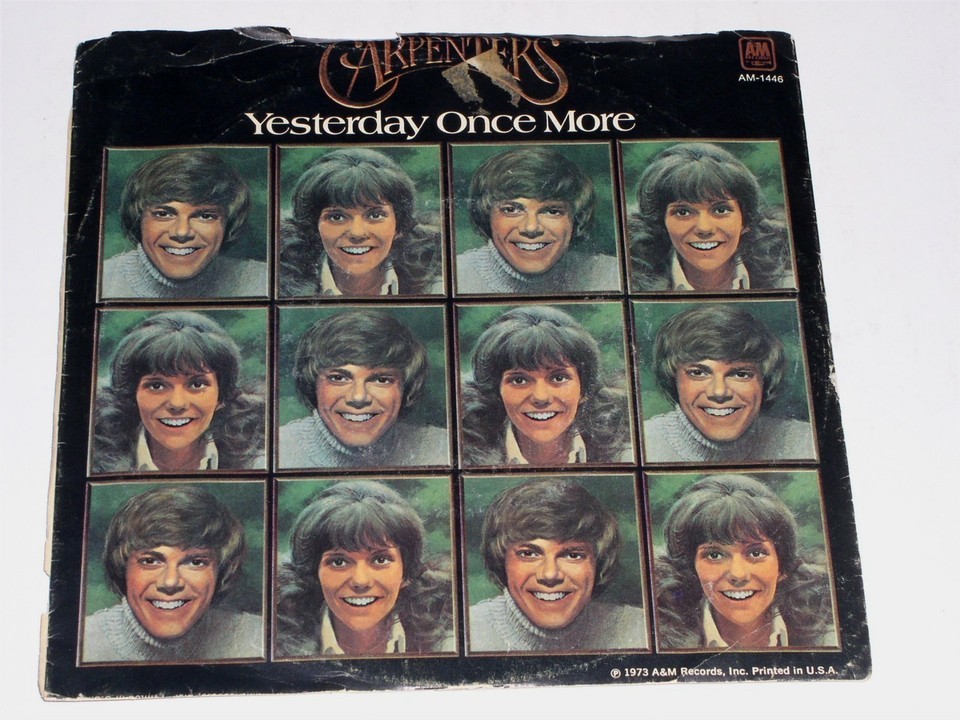 This is a vintage Carpenters 45 rpm phonograph record by The Carpenters entitled, "Yesterday Once More". Flipside: "Ode Road". Record label A M 1446. Comes with the original picture sleeve.