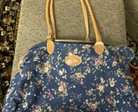 Carpetbags of America Blue Floral Rose Canvas Tapestry Bag Purse Leather Braid