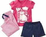 - Carter's Girls Toddler 3-Piece Kitty Cat Pants, Shorts Pajama , PJ Set