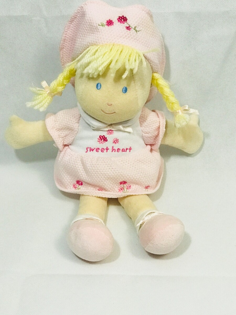- Carter's Sweetheart Soft Plush Doll Pink Dress Embroidered Flowers