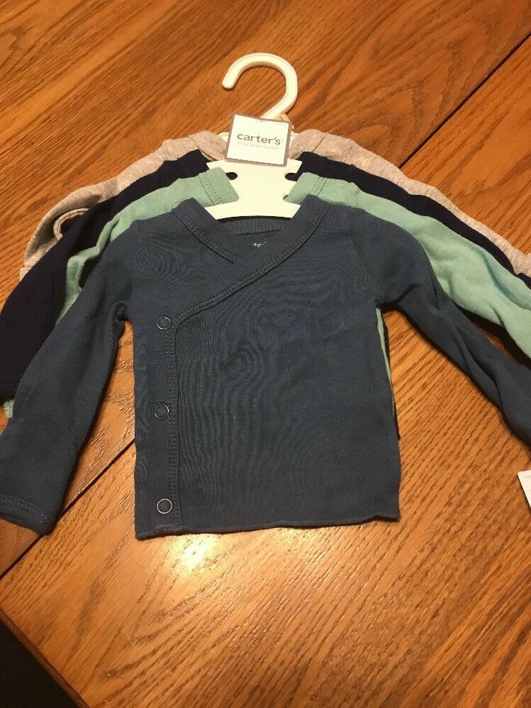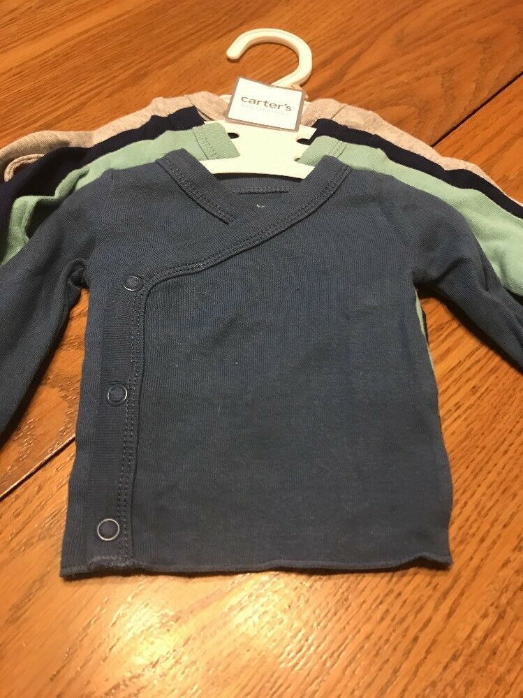 - Carters Preemie Boys Side Snap Shirts Set Of 4 Fold Down Sleeves Hand Cover New