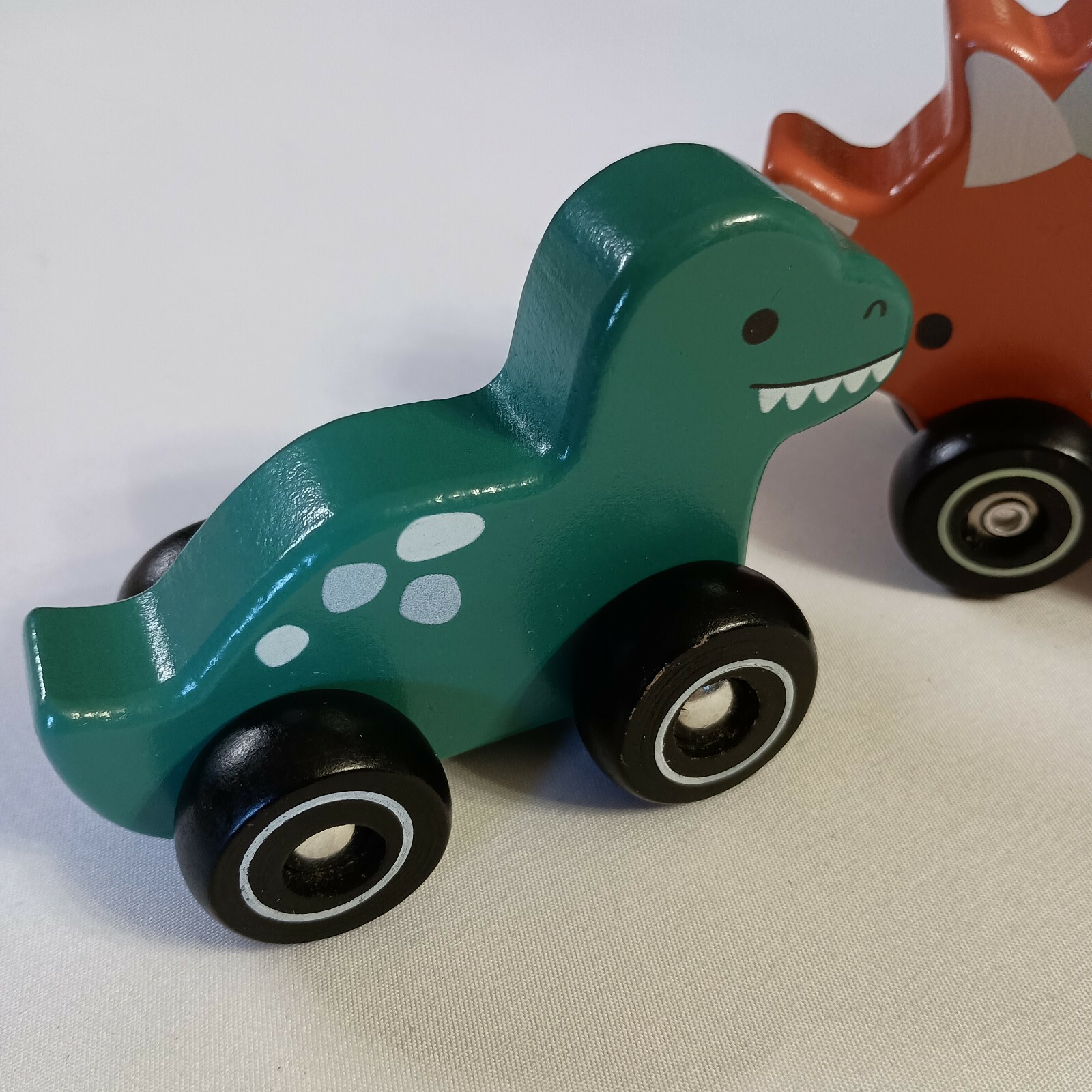 - Carters Wood Toys Lot of 2 Rolling Dinosaurs Green And Pink Learn Developmental