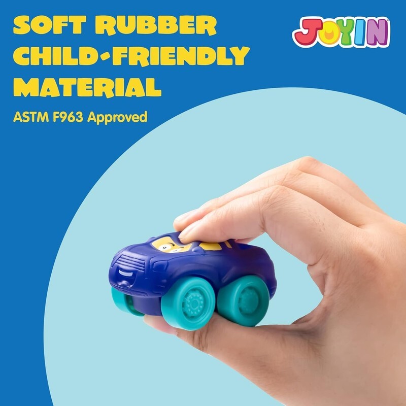 SOFT RUBBER MATERIAL.These cartoon rubber cars measure 2.1*1.5*1.8 inches and is made out of soft rubber material. These rubber vehicle toys are great and ideal for children. Ignite your child?s imagination and motor skills with these cute and adorable small car rubber toys.