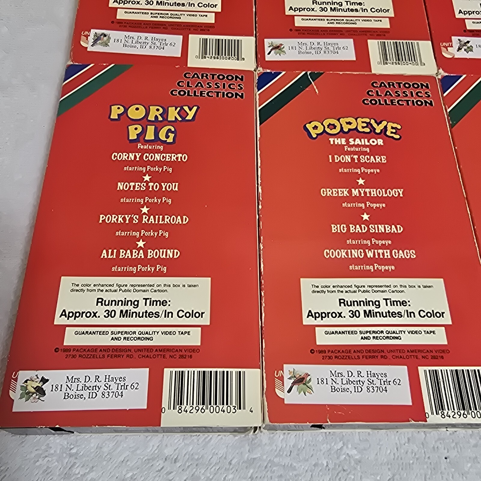 Each tape features multiple classic animated shorts