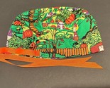 The handmade euro style hat with contrasting ribbon ties is a fun accessory for those in the food industry. Made from 100% cotton in vibrant green and orange colors, this scrub hat features a one-size-fits-all design.
