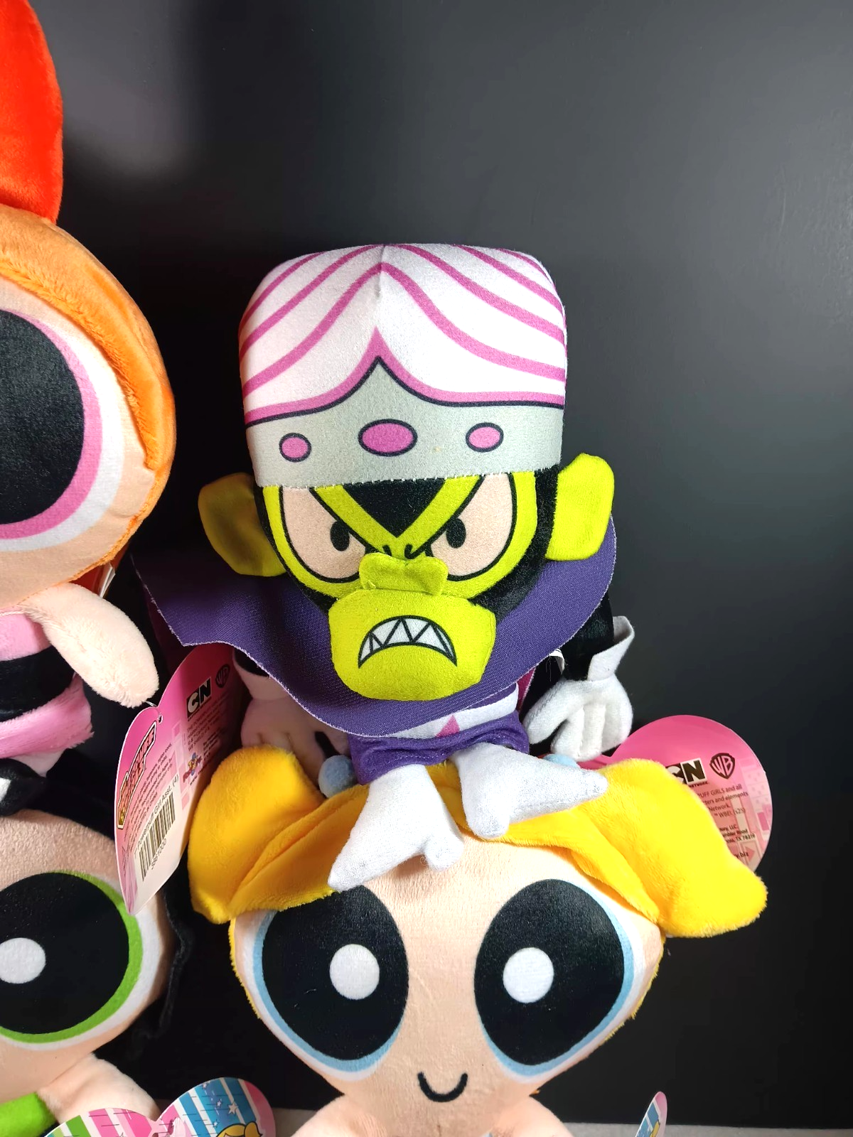 The Cartoon Network Power Puff Girl Set of 4 Stuffed Animals features characters from the beloved animated series, The Powerpuff Girls. This limited edition collectible set includes 6" plush dolls of Buttercup, Power Girl, Blossom, and Mojo Jojo, perfect for fans of the franchise. Made of plush material and originating from China, these adorable plushies are a must-have for any avid collector or fan of the show. With their cute and kawaii designs, these vintage-inspired toys are sure to bring joy to any fan's collection.