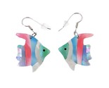 Carved Mosaic Colored Mother of Pearl Tropical Fish Blue Shaped Hook Earring MOP