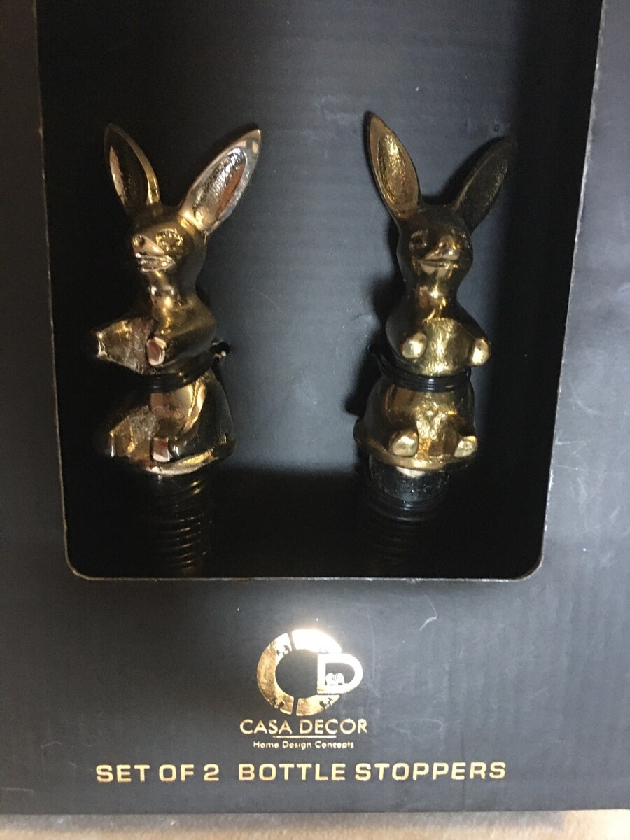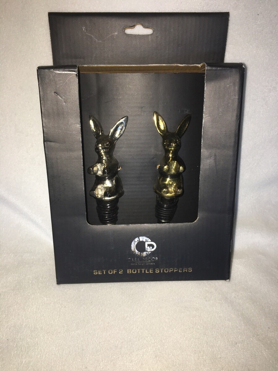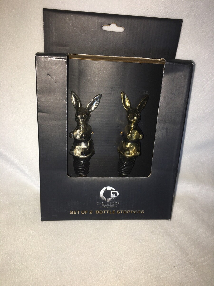 - Casa Decor set of 2 metal rabbit/ easter bunny wine bottle stoppers NIB