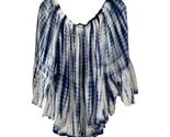 Cassee?s Women?s Blue White Tie-Dye Peasant Blouse Size 2X ? Rayon Boho Off-Shoulder Top