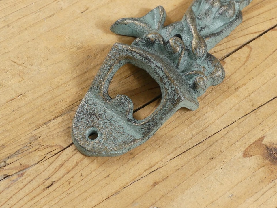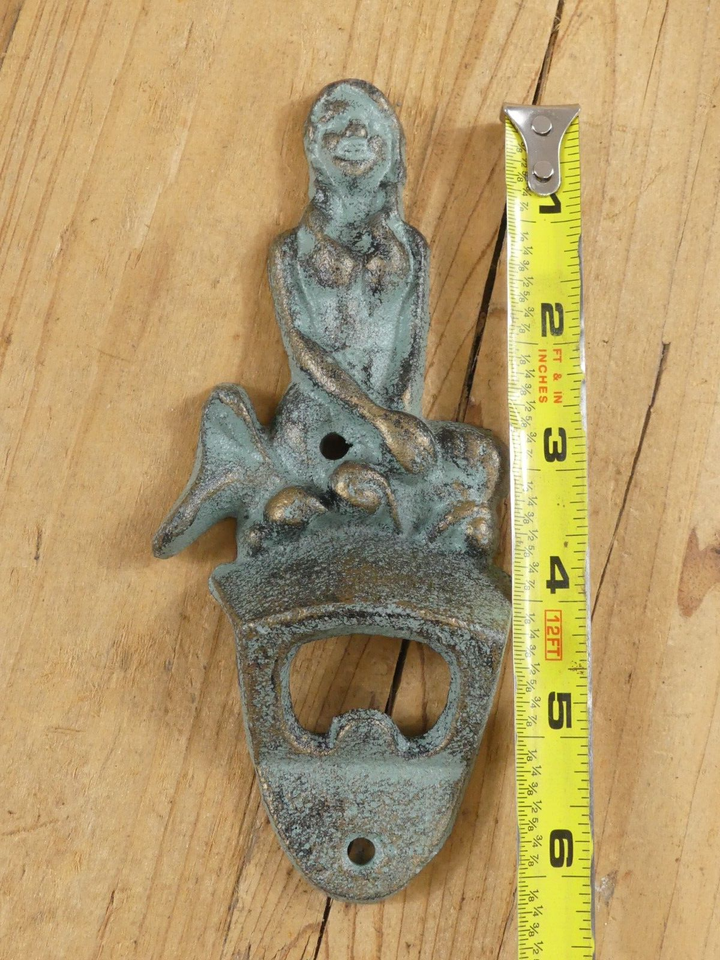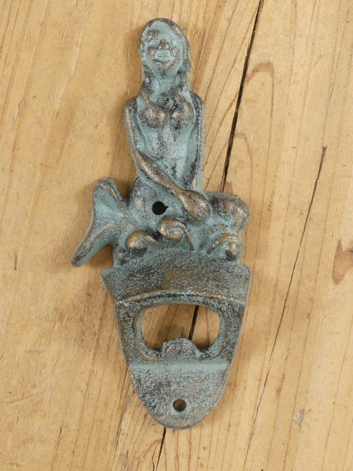 - Cast Iron Mermaid Bottle Opener Wall Mount Mountable Beach Cabin Bar Beer Pop