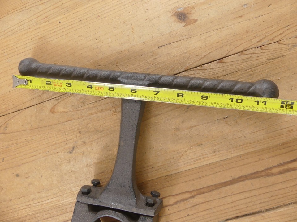 “CAST IRON FOOT REST. CLAMPS ON BY TIGHTENING SCREWS AROUND CLAMP.” |