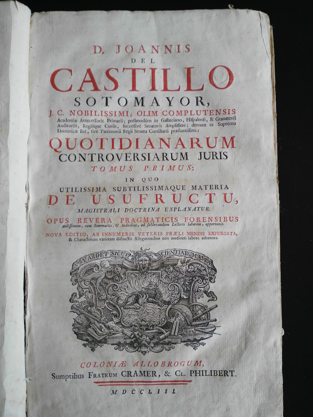 - Castle Opera Omnia Juridica 1 And 2 de Usufructu Latin año 1753 Mdccliii Unique