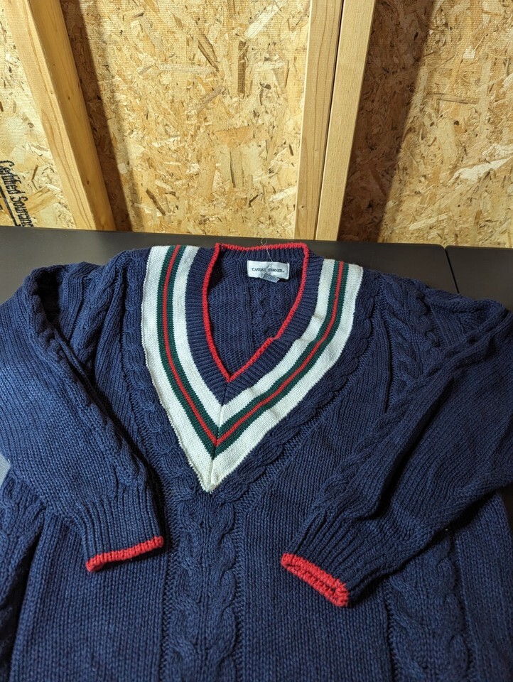 Step out in style with this Casual Corner ladies sweater. The colorful multicolor pullover is made of a soft and comfortable ramie and cotton blend material, which is perfect for casual occasions. The sweater features a classic V-neckline and long sleeves, making it ideal for any season. The shoulder pads add a touch of elegance to the overall look of the sweater. This sweater is a must-have addition to any women's wardrobe. 22" armpit to armpit and 18" armpit to waistband
